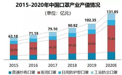 事實上,中國是一個口罩產業(yè)大國,生產了全球約50%的口罩。在疫情發(fā)生之前,中國口罩最高日產為2000多萬只。2019年,中國大陸地區(qū)口罩產量超過50億只,產值高達102.35億元。一年50億只,分到每個人身上也就不到4只,而且在有些高風險的情況下,口罩每4小時就需要更換一次。面對新冠疫情橫行,14億人的需求,這就顯得杯水車薪了。