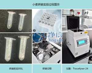 小麥樣品中提取DNA,之前采用研缽手工研磨的方法,在研缽內(nèi)倒入液氮,在凍干狀態(tài)下快速研磨,研磨過程中葉脈不易研磨,整體研磨樣品不充分,影響實驗效果,因此選擇上海凈信多樣品組織研磨儀。